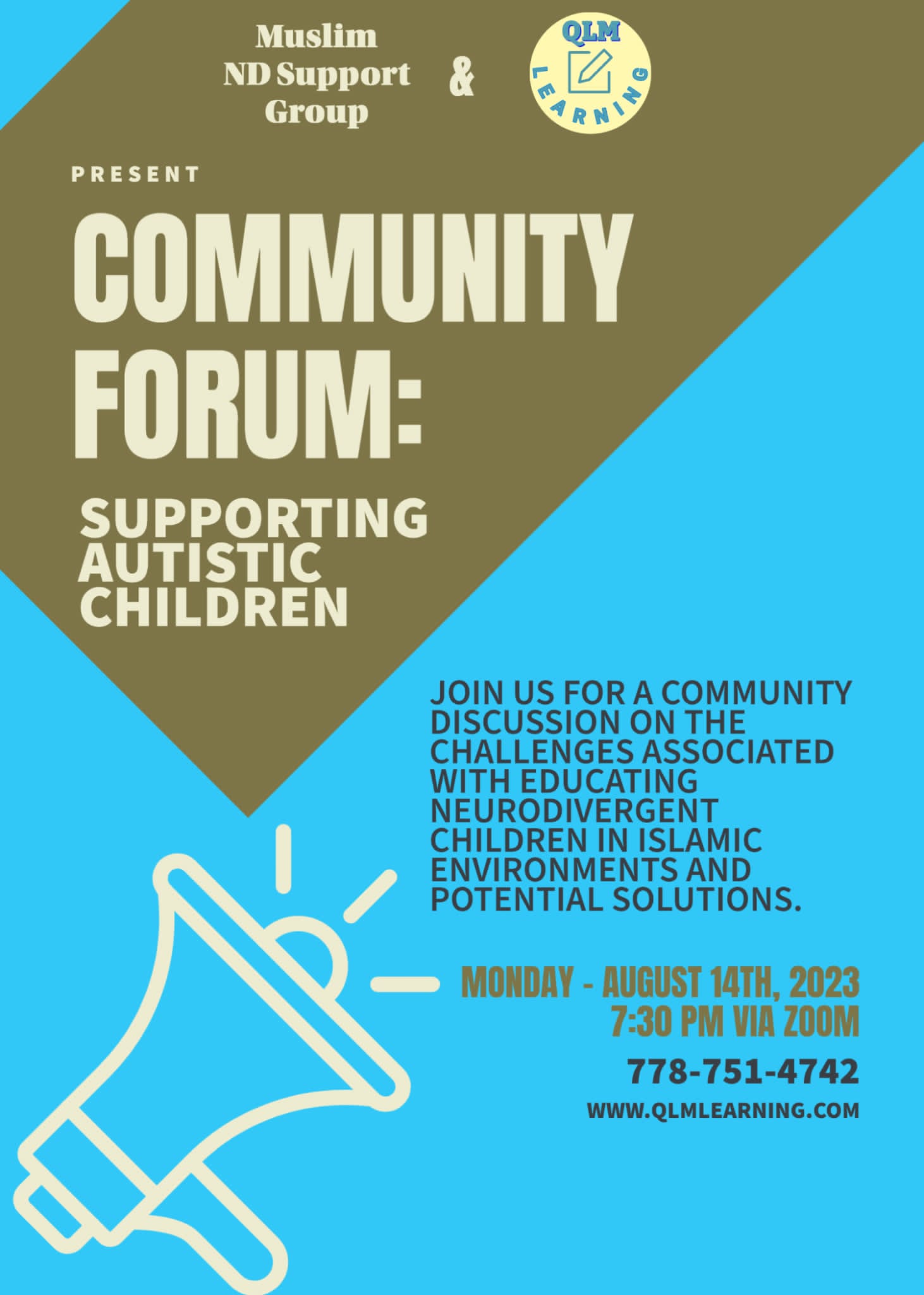 Muslim ND Support Group and QLM Learning are hosting a community discussion about educating neurodivergent (ND) Muslim children in Islamic environments.